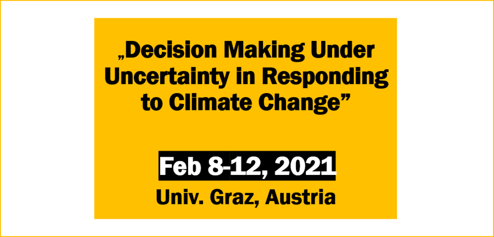 The overall Winter School topic ‘Decision Making under Uncertainty in Responding to Climate Change’ was approached from various perspectives in four keynote sessions, each dedicated to a particular topic. Each topic was addressed by one leading expert in the field, and complemented by doctoral contributions and a structured discussion. Furthermore, students worked in parallel in several break-out-groups and could improve continuously on their interdisciplinary projects throughout the week. They were advised and supported by faculty and keynote experts. At half-time, we had a virtual drink & chat together and a climate-specific PubQuiz which was great fun. On the last day, the poster session provided individual feedback for students on their PhD projects. In the DK colloquium, as a follow-up to the winter school, groups presented their project results and got further feedback from the DK Scientific Advisory Board.