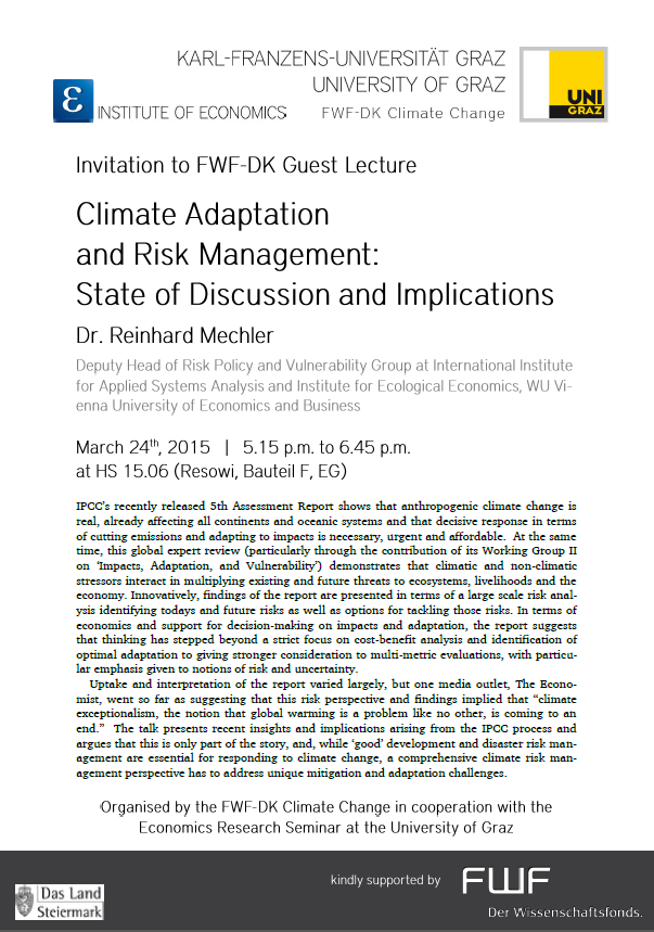 Doktoratskolleg Klimawandel (dk-climate-change(at)uni-graz.at oder 0316 380 7400)